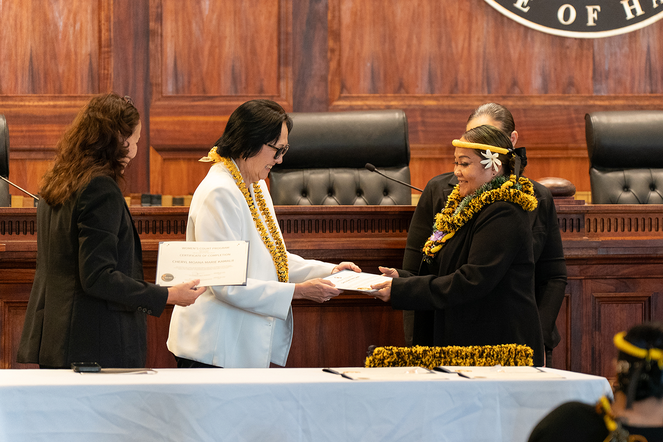 On January 28, five women graduated from the second cohort of the Hawaiʻi State Judiciary’s Mohala Wahine program—also known as Oʻahu’s Women’s Court—during a ceremony in the Supreme Court courtroom.