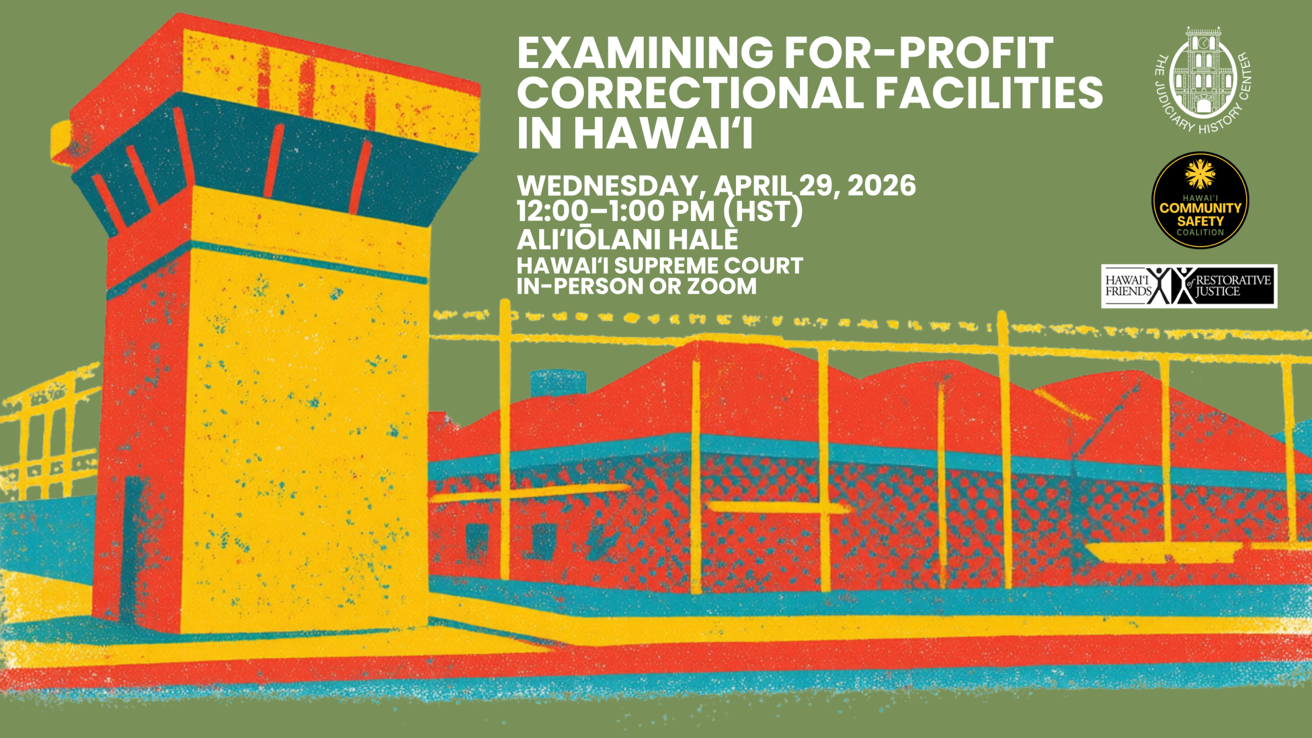 Eventbrite (In-Person) RSVP: https://examining-for-profit-correctional-facilities-in-hawaii.eventbrite.com/